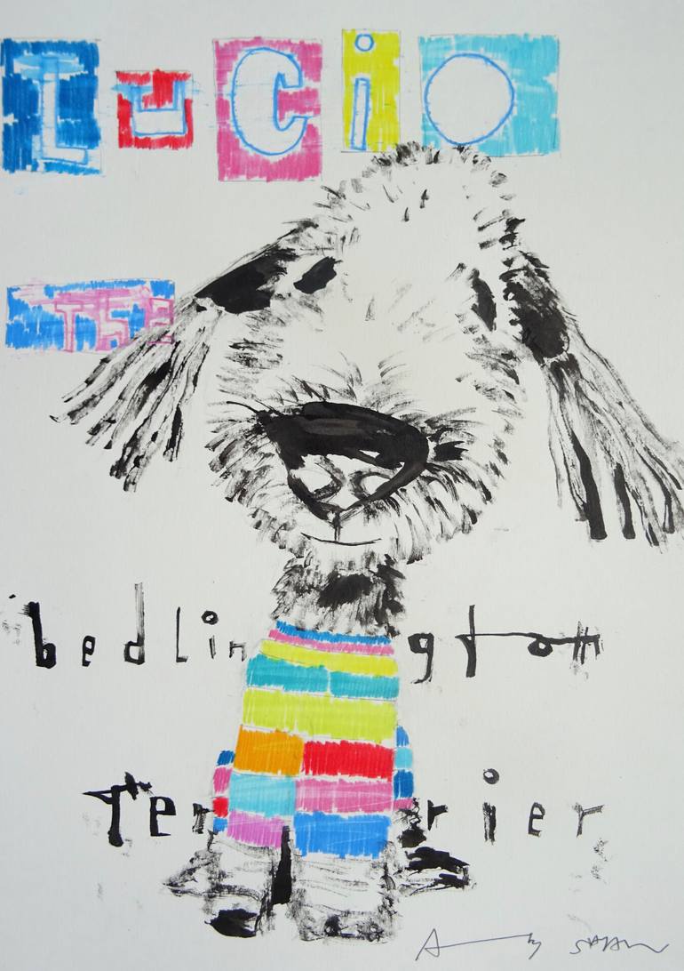 Lucio Fontana the Bedlington Terrier Dog Ink and pencil on paper 2017 Available to buy as a print