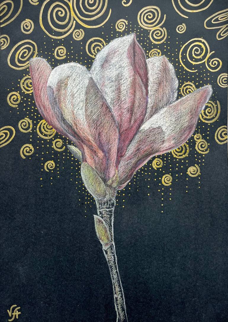 Alena Vakhmistrova's paintings show the beauty and mystery of black in botanical and animalistic subjects. In many cultures, black is the color of sadness and mourning, but the artist has the opposite perception. For her, it is the color of calmness, peace and universal infinity. And gold in the paintings is a symbol of the divine light and warmth of our universe. After all, any light always begins with pitch darkness. The artist often traces lines, points and geometric shapes in her paintings. “The universe is a collection of energy lines that I see in my head. They create harmony, harmony and beauty in our world. And I try to be a guide who shows this to people in my paintings. Alena was born and raised in the city Dnipro, Ukraine. She graduated from the Dnepropetrovsk Theater and Art College, and then Kherson University with a degree in Fine Arts. At the same time, while studying at the university, Alyona taught drawing to children from 5-6 years old. After graduating from university, she went to work as an art teacher at a school and continued to paint in search of her own genre. Over time, the artist realized that she loves to depict nature and everything connected with it. Then, over the years, came the understanding of what her author's style should be and what she wants to bring to this world.