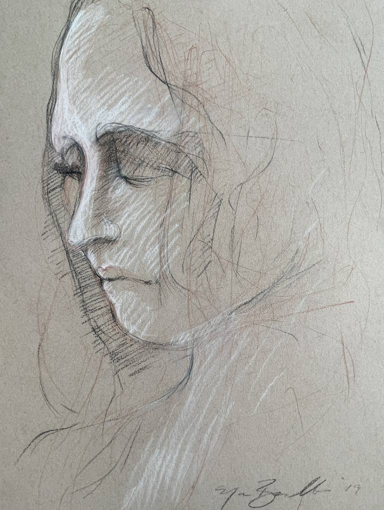This drawing from 2019, is inspired by the Italian Renaissance and the classical tradition of painting madonnas and the Virgin Mary.