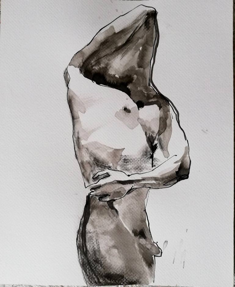 Ink drawing on Tintoretto 350gr Inspired by the fluidity of human form