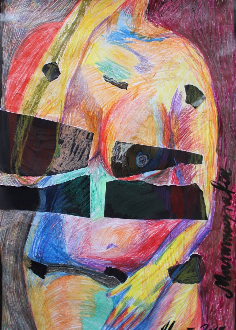 Mammmografia, watch carefully to see abnormal findings… drawing/collage on paper, signed