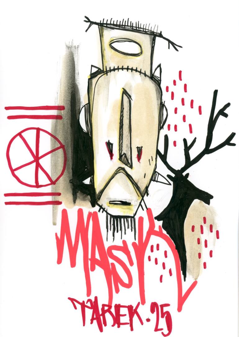 Declination of the Mask art series with totem representations. During his stay in Cameroon in 2017, he painted walls in schools at the Ministry of Tourism. He also shared his passion with other Cameroonian painters who participated in the murals. On the spot, he was able to acquire many African mask...