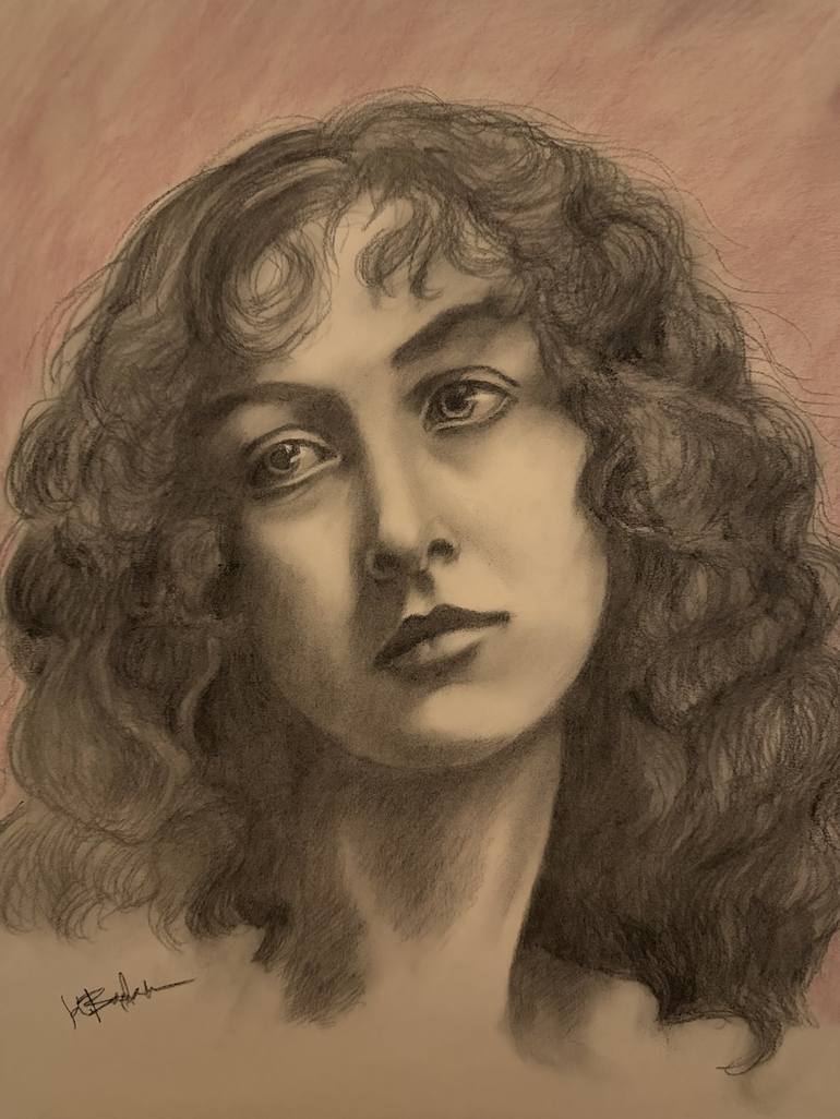 A captivating portrait drawing of Maude Fealy, a celebrated actress of the stage and silent film era. This fine art piece captures her charming beauty and inspirational talent, rendered with delicate precision. The artist's skillful use of charcoal, conte, and colored pencil on toned Fabriano paper...
