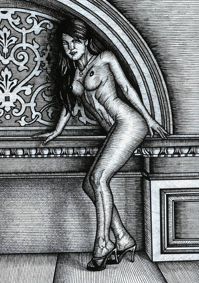 One of the nudes made in black ink on paper, included in "Nudes" Codex.