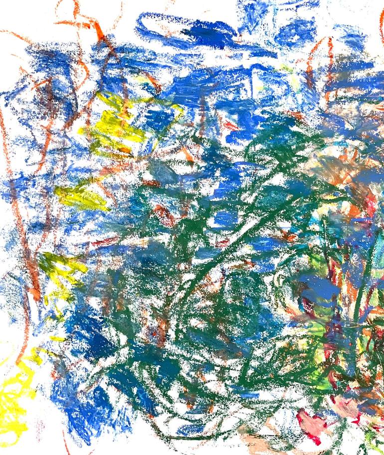 This piece is meant to reflect springtime colors. My goal was to use energetic pastel work to elevate the level of this piece's abstraction.