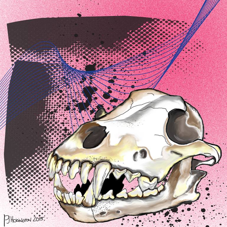 Mirror Image (a wolf skull) is part of a series of animal skulls with "modern" abstract elements. Created with PhotoShop and a Wacom tablet and a hand drawn sketch used as visual reference. I love skulls. I love the feel, the color, the symmetry, and the fact that we all share them - all animals hav...