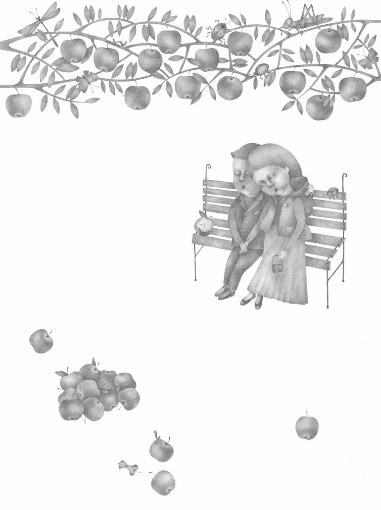 Pencil and paper...You can tell so many things using these two objects ( materials ): a story about friendship, tenderness, inner power, love! These two materials are sufficient to transmit the purity of air and space. Black and white graphics is elegant and symbolic; multiple colors of our emotions...
