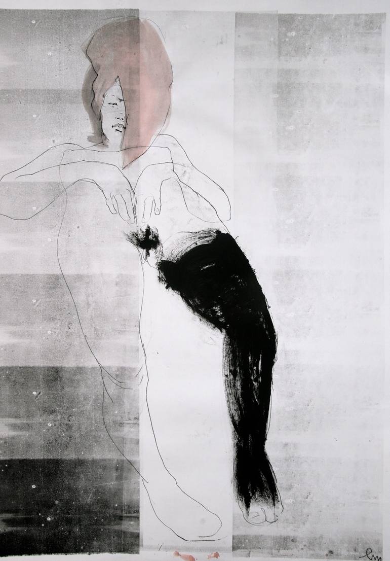 black ink monotype and ink drawing on 110g flyleaf paper FEBRUARY 2017. Monotype drawing used as a drawing technique creates the effect of a lithography. But contrary to lithography, my drawings are strictly one of a kind, 100% original and unique copies: they are drawn without any optical device...