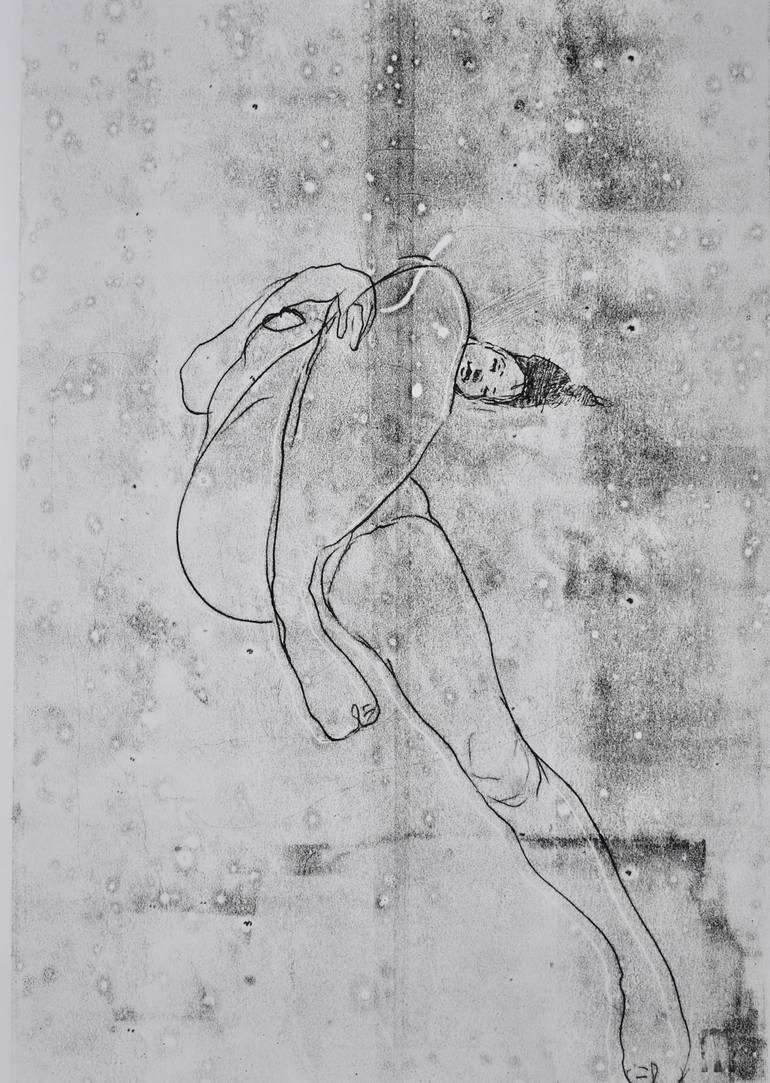 black/color ink monotype/drawing on 120g DOREE white paper MARCH 2018. Note that my drawings are sent rolled and very well protected in a tube. Note that many of my colored drawings show slight undulations around the colored parts due to water intervention on the big size paper sheets The 100...