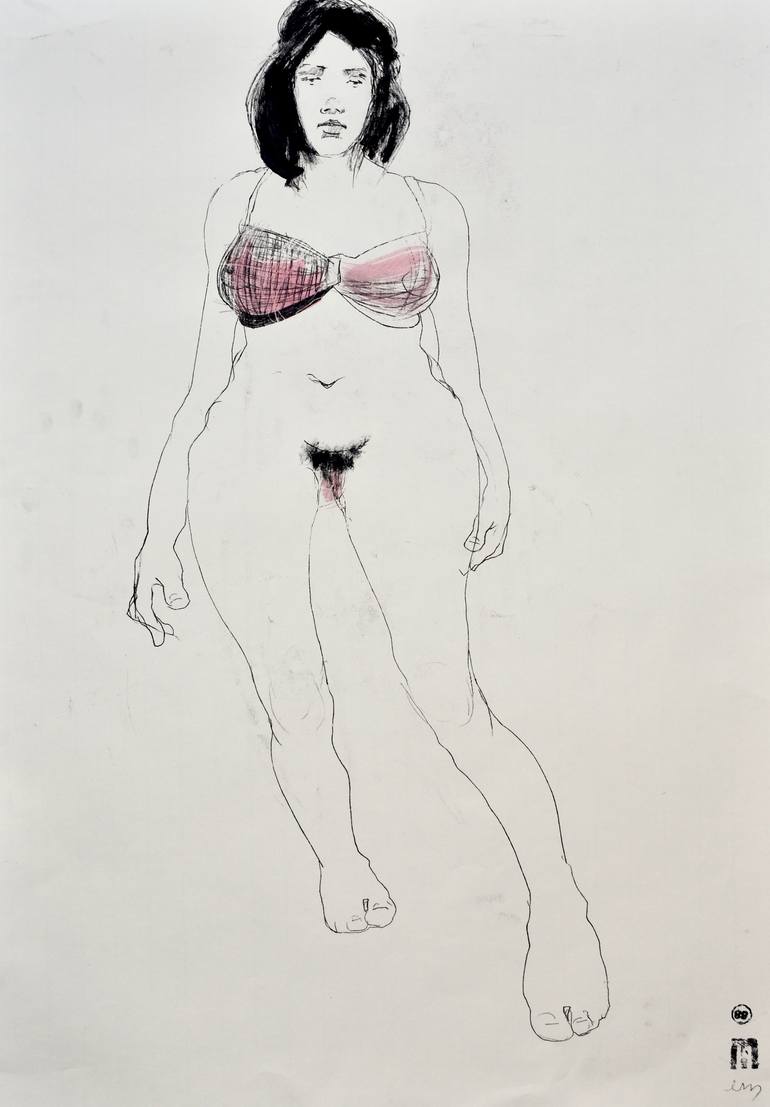 black monotype & ink drawing on 110g flyleaf DOREE paper, FEBRUARY 2018. Note that my drawings are sent rolled and very well protected in a tube. Note that many of my colored drawings show slight undulations around the colored parts due to water intervention on the big size paper sheets The d...