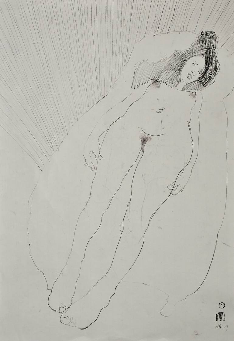 black monotype & ink drawing on 110g flyleaf DOREE paper, MAY 2019.. Note that my drawings are sent rolled and very well protected in a tube. Note that many of my colored drawings show slight undulations around the colored parts due to water intervention on the big size paper sheets The drawing...