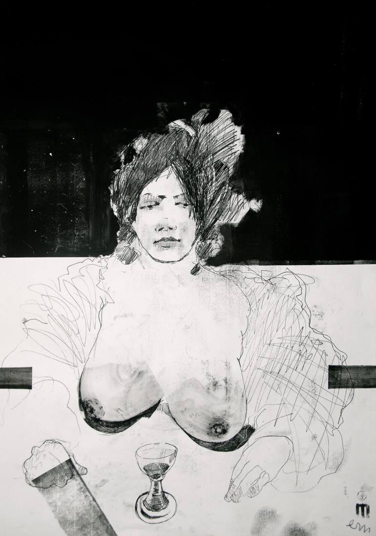 black ink monotype on 110g vergé (ripped) white/cream paper, strictly one of a kind, billboard size