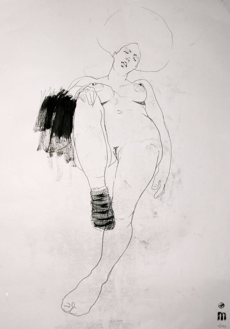 100x70cm, black ink monotype and drawing on 110g slightly cream colored flyleaf (ripped) paper (as used for the flyleaves of books. Strictly one of a kind, signed, monotype used as a drawing technique creating a fine, mysterious black line very similar to engraving, but much freer, directer, 20th of...