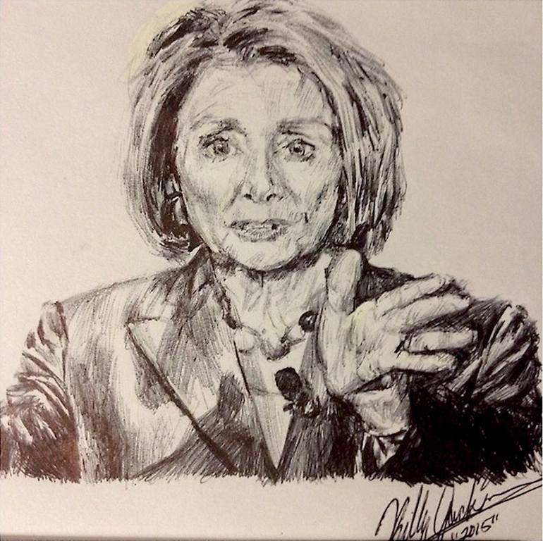 Nancy Pelosi portrait using an ink pen by Chicago Artist Billy Jackson. Pen on paper #noeraser
