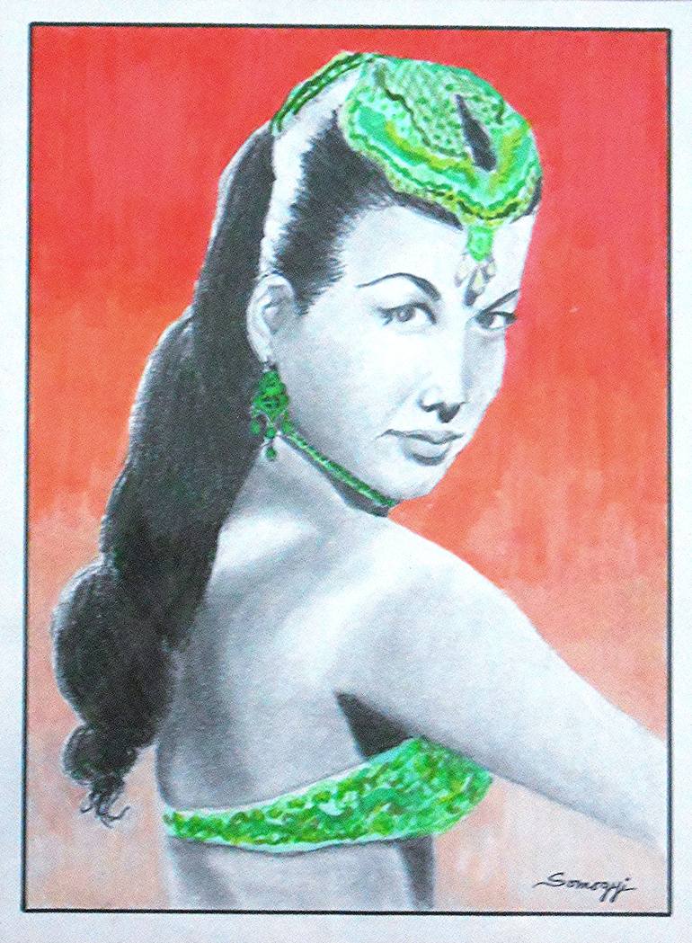 9x12, graphite pencil, art markers, colored pencil. This is a portrait of Nejla Ates (1932-2005), a famous Turkish dancer of "Crimean Tatar" descent.