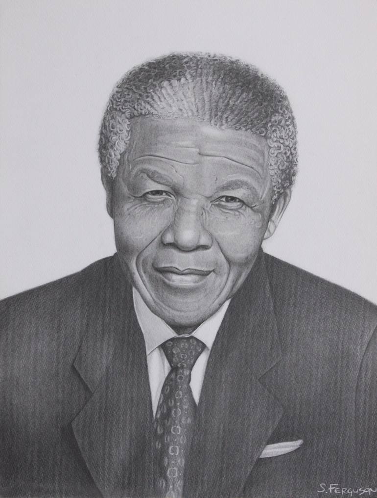 Graphite pencil portrait of former South African president, humanitarian, nobel peace prize winner and global icon, Nelson Mandela