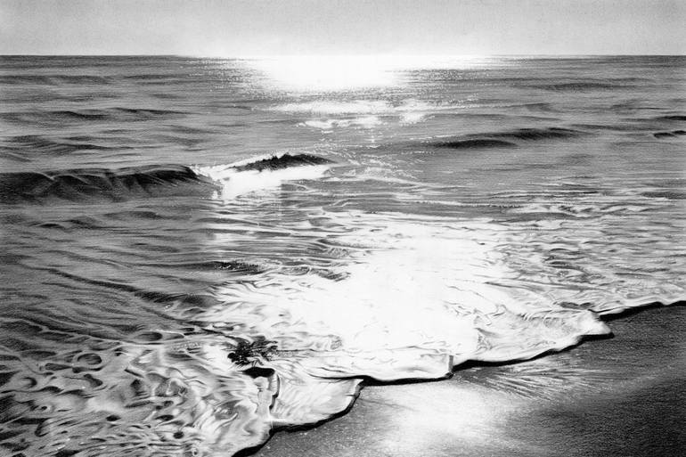 A bright, crisp January afternoon. There was a slight onshore breeze and you could smell the salt in the air above the sounds of the circling gulls. "New Horizons" was created using charcoal pencils, fixed on 90 lb acid free archival quality drawing paper. Please visit for more artworks, limited...