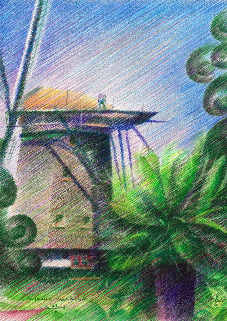 Nieuwe Veenmolen – 23-09-18 The Nieuwe Veenmolen, dating back from 1652, is situated nearby to where I live. Last summer I saw a thatcher repairing the roof. In my ever search for harmonizing all kinds of differenet styles from the past, like luminism, pointillism, impressionism, realism, cubism an...