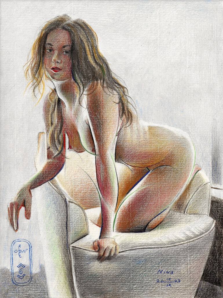 This graphite pencil drawing ‘Nina – 05-09-23’ puts me back on track of studying this beautiful and intriguing model. For those who don’t want to miss out, you can visit her profile on deviantart under the name ‘Ninaerotique’. Last August 23rd I made one of her reclining on a bed. However, my last d...