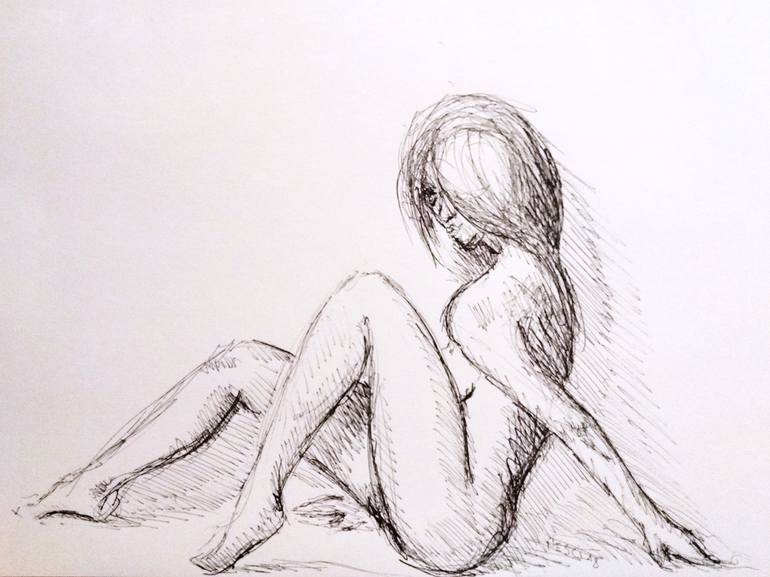 Nude girl sitting - Ink drawings on paper, nude girls and models Nude girl sitting - Ink drawings on paper, nude girls and models, original ink drawing is signed. The work will have its certificate of authenticity.