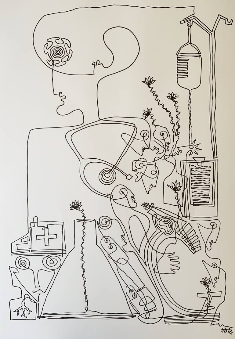 Year-2020 Corona warriors We can see the uniq person in the society and their thoughts, I used one line to make this drawing and its quite challenging for me. One line one life! This is a drawing series. The drawings in this series start with a single line and end in same line. Life is also as s...