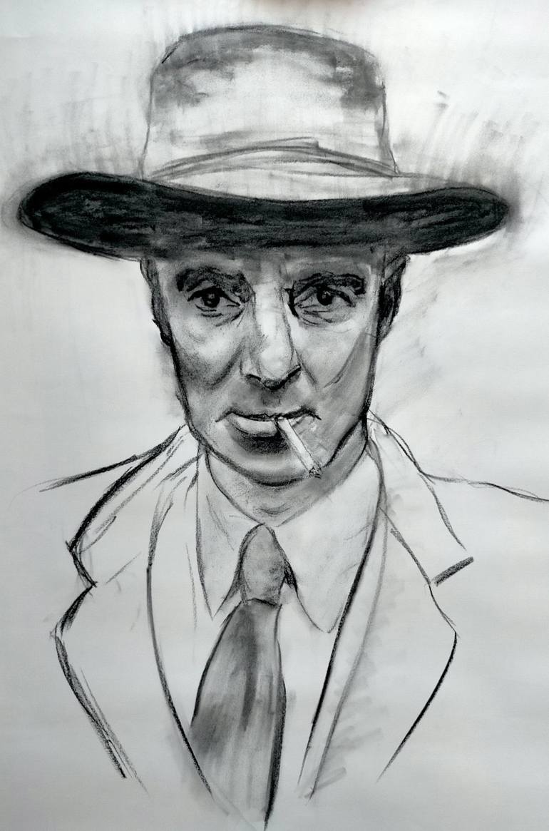 This portrait shows J. R. Oppenheimer, the famous father of the atombomb. Charcoal is a great medium for portraits, it creates images of great force using just a few lines.
