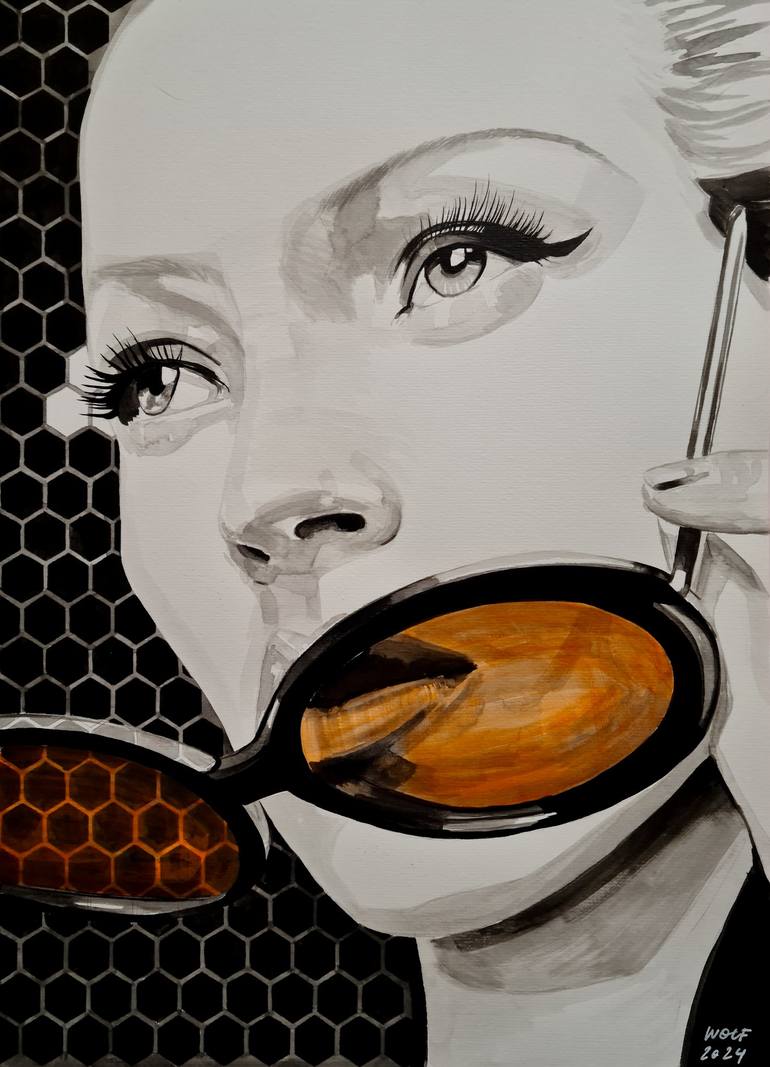 My artist name is Wolf. My real name is Gayle Ghillemyn, Gigi. As you can see i'm obsessing over squares, hexagons, octagons and patterns. I integrate patterns to make the artwork more vibrant and evoque a contemporary feel. Lately I'm influenced by AI generated Fashionillustrations. I grew up in Flanders Fields, Ypres, Belgium. My house was standing on top of a little hill next to hill 60-62, in wolvestreet. When the wind was blowing hard it was like a pack of wolves howling. My artistname was easy to pick : WOLF. I've travelled around the world for 8 years, from my early 26 untill I was 33 as a Tourism Representative for Thomas Cook. During this time I've lived and worked in Rhodos Island, Lanzarote Island, Kreta Island, Djerba Island, Tunisia, Cuba and Spain(Marbella). Influenced by these different cultures and religions I paint with vibrant colors and hommage sensuality around the globe. You loooooove Black & White ? Check out my Glamourous and sophisticated collection on : Gilles LeBlu here on Saatchiart!