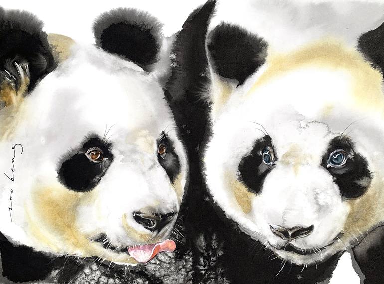 Adorable Giant Panda sticking out its tongue that is amusing to behold. Ink and watercolour on Saunders Waterford 300gsm smooth cotton paper. Photo reference from Pixabay