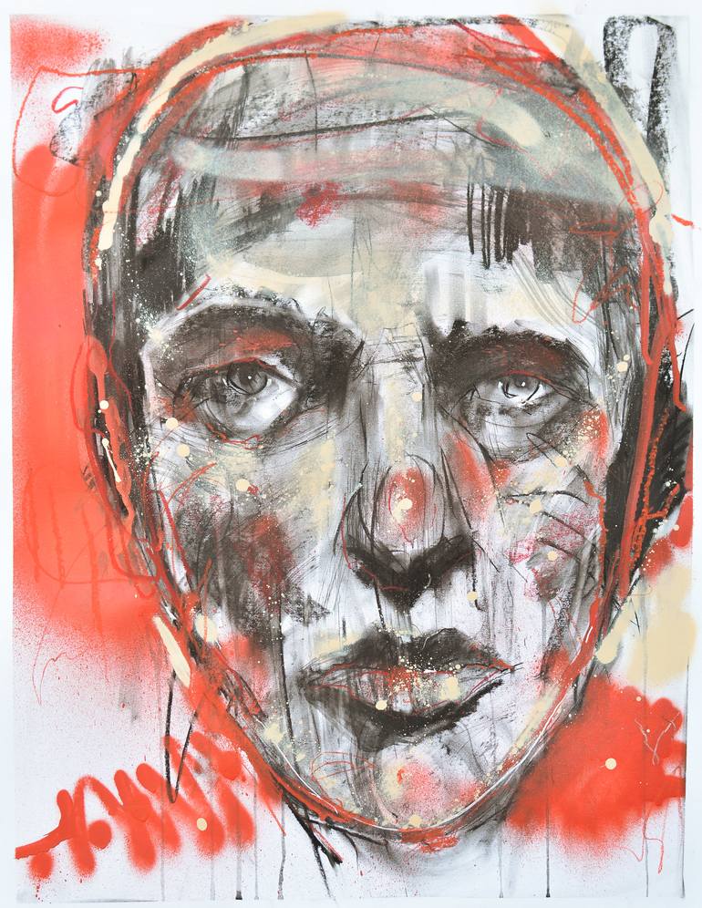 Charcoal,spray paint and oil pastel on bristol board paper -signed and dated on back -ships flat with certificate of authenticity
