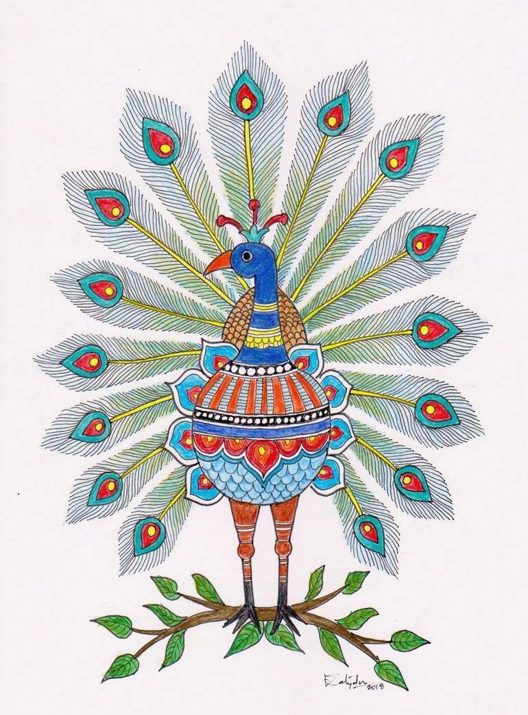 This artwork is inspired by the rural folk art from tribes of India, from state of Madhya Pradesh. The Gonds tribe folk art has now taken an international recognition. Themed around jungle, rural life, harmony between animals & humans, this art form is a celebration of simple human life.