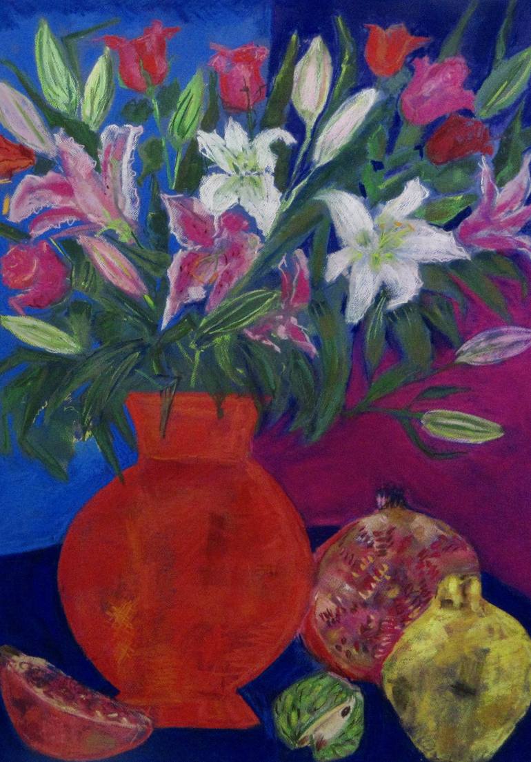 This drawing is inspired by my recent love of Greek Mythology. . I became interested in it during lockdown . The image represents the flowers Pesephone was picking when Hades came and took her to the Underworld. I chose pastels for this one as I love the textures you can achieve with the medium. So...