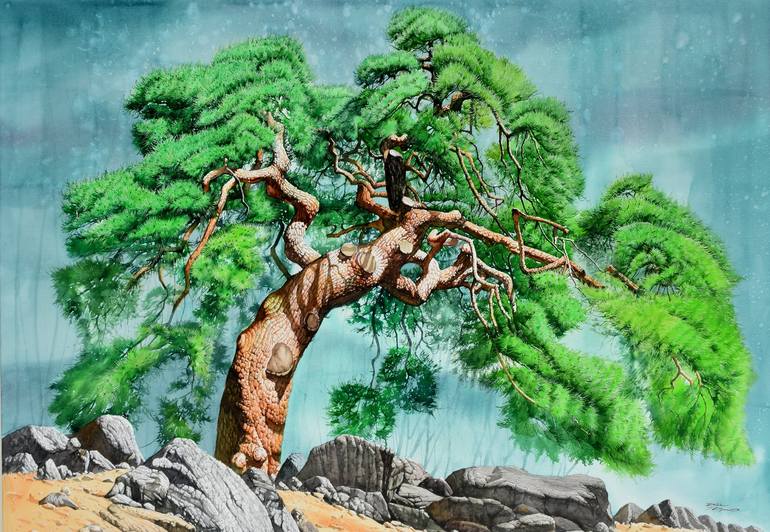 그림속의 소나무는 대한민국에서 유명한 소나무 중 하나입니다. 소나무는 고결함과 절개를 상징하기 때문에 대한민국 사람들이 사랑하는 그림이기도 합니다. 이런 그림은 큰 사이즈로 소장하기를 권장합니다. 개인이 걸어두셔도 좋고 기업이나 회사에서 소장하셔도 아주 멋진 그림이 될 것입니다.