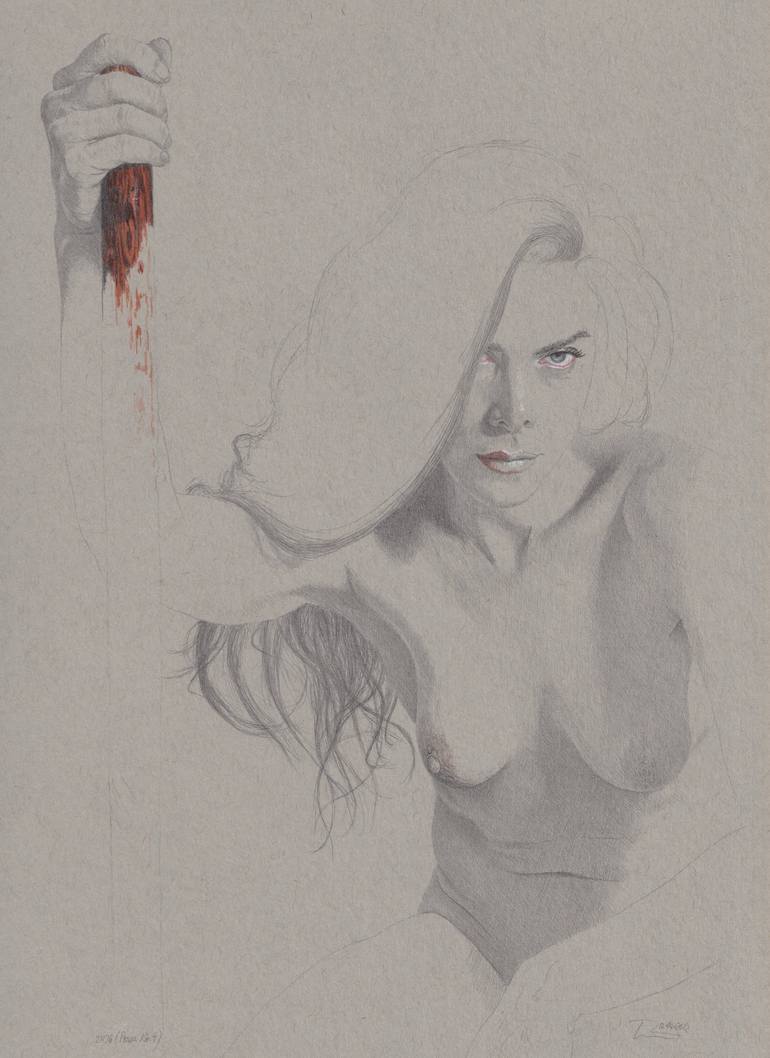 From my "Power" series the number 9. I love her pose and the face expression! Drawing is on grey toned Strathmore cardboard.