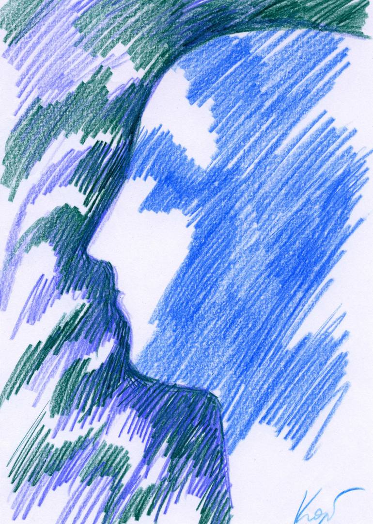 The expressive drawing is made on paper with a colored pencil. Size 15x21 cm.