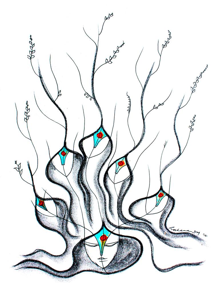 Pen and ink with pastel on paper. Bonding between members of a family across multiple generations. My work deals with cultural identity, roots and memory. As the past is replayed and reconstructed in the mind, there is a longing to reconnect. Long forgotten relationships and memories, long hidden,...