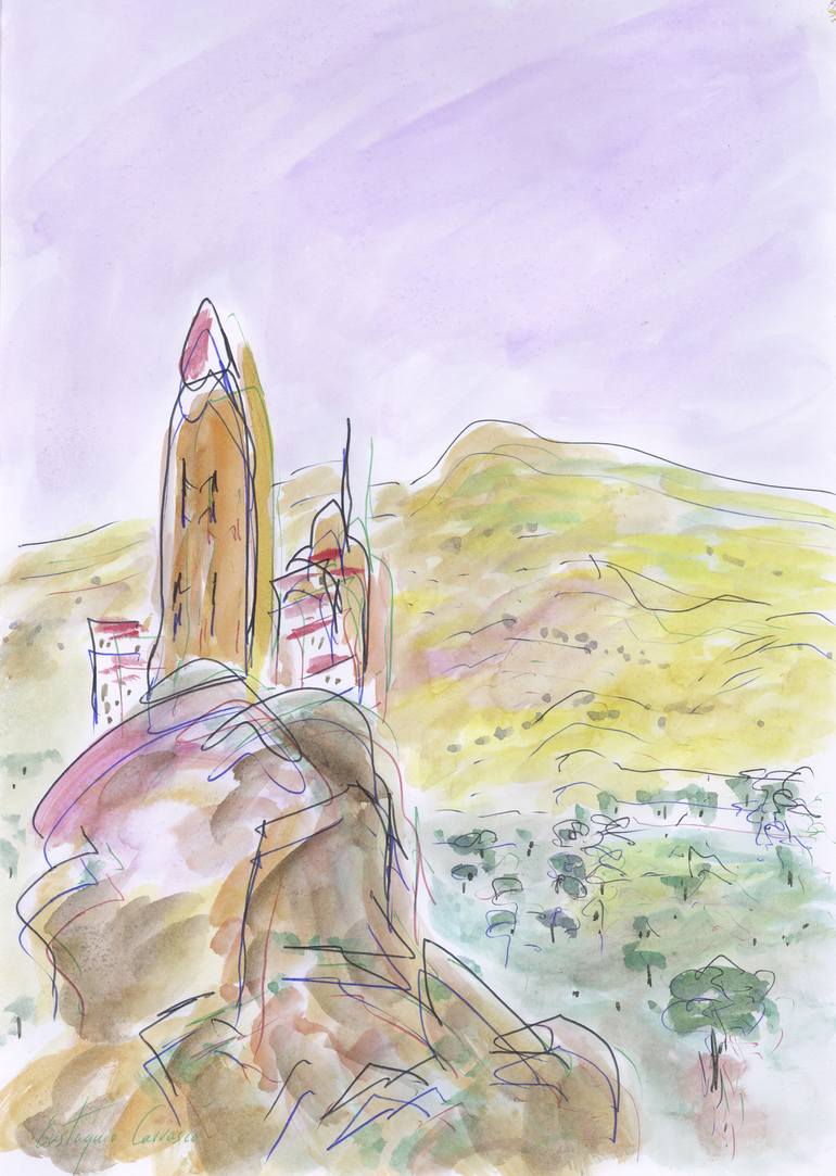 This landscape is characterized by being truly extraordinary in the way it is made; the watercolors and colored pens marry very well and make this artistic work an excellent sample of very original lines and colors with completely new shapes and elements of the landscape and a very marked and origin...