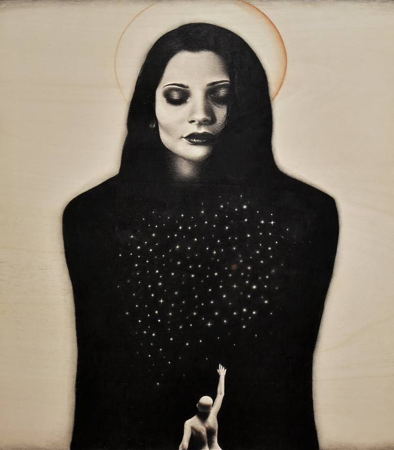 Queen of the night - Annegare pastello su tavola 70x80cm "..puoi udire la supplica schiumare nell'eco tra il sonno e il futuro quando morendo diventi bambino e vorresti rientrare cieco e non visto in una madre di passaggio"