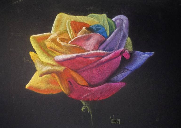The unique composition of the rainbow colors in the rose flower inspired me to express it in my drawing.