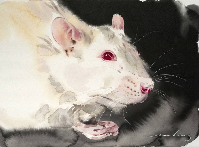 The rat is a symbol of quick-wit and resourcefulness. People born in the year of the Rat share its characteristics of strong intuition and enterprising spirit. Ink and watercolour on Saunders Waterford 300gsm cotton paper.