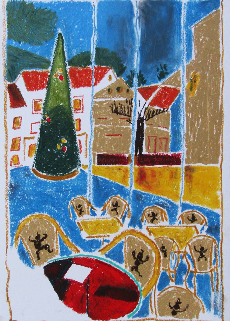 "Mary Cinque is an Italian painter, graphic designer and blogger working and living in the Amalfi Coast. Her works – joyful, bright, colourful painting and drawings – are inspired by this place, as well as her heritage, background and travels. Mary spent her childhood between Italy and Ethiopia. Before moving back to the Amalfi Coast in 2019, she has lived in Naples and Milan, where she attended academies of fine art; and Philadelphia, New York and London where she improved her artistic skills and style. Alongside making art, she works as an illustrator and graphic designer, collaborating with selected brands, working on artistic commissions such as illustrations, labels and showroom design. Cinque’s art develops themes connected with what makes us essentially humans: our habitat – the buildings, the streets, the cities – our bodies, what we eat and how we socialise. Art, in Mary’s paintings, becomes a powerful instrument of philosophical investigation which reveals who we really are by questioning our habits, observing those characteristic traits we share as a species, often without realising it. The artist looks at human beings from a different perspective, making interesting and significant what can seem normal or banal to us in our everyday life: the buildings that populate our cities, the streets we walk, people sitting across our table at a café, strangers on the bus. In this nutshell interview by Giulia Corti, Mary Cinque explores some of the most relevant aspects of her art and reflects on how it offers an intriguing and informative perspective about the way we live as human animals. Mary, your art is colourful and vivid, it mixes human and urban subjects by making use of various techniques (oil painting; pastel drawing, markers, “digital” drawing, print-making etc.) and materials (canvasses, magazine pages, an I-pad screen). How do you choose the means with which to develop an artwork and how do the different materials and techniques influence what you want to convey, if they do? Different subjects call for different techniques. Buildings and urbanscape are always acrylic on canvas, while I prefer to depict people using a quicker, immediate approach, like the one that I can get with markers and oil pastels or digital painting. By looking at the main themes of your art, it is possible to notice what seems to be a tension. On one hand, you portrayed the stillness and artificiality of urban landscapes and buildings (e.g.