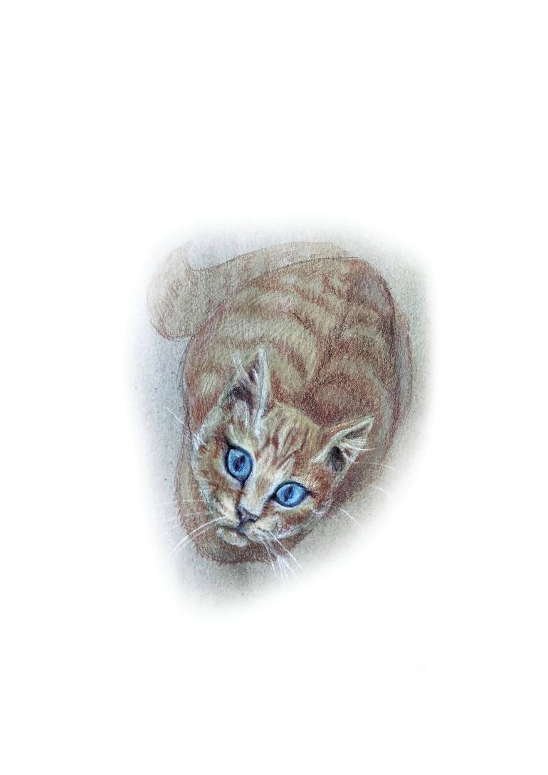 The fluffy ginger cat was watching me intently with his big blue eyes.
