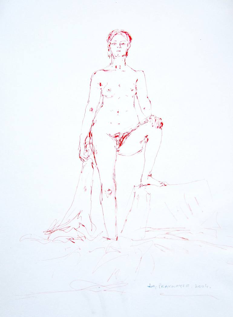 This nude was realized in red blood colour ink on white paper during a sitting session with model in Nieszawa. Enjoy ! Page size is: 32,7cm x 45,2cm