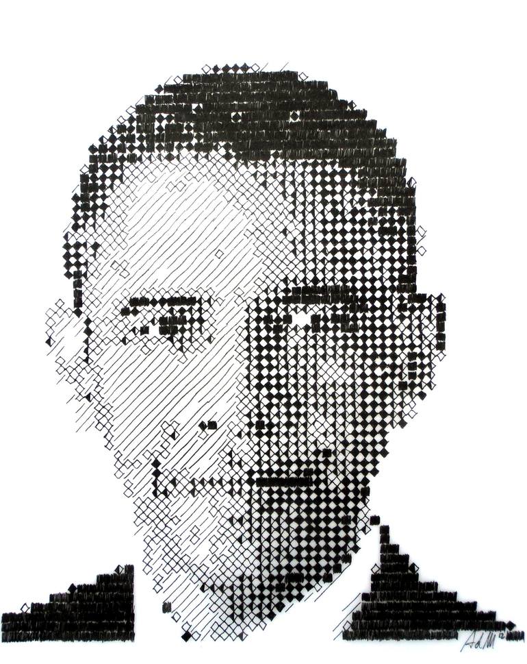 Italian artist, based in Rome, explores order and disorder in nature through an original technique of image decomposition called "atomic art". His portfolio includes portraits, still lives, landscapes, and other subjects.