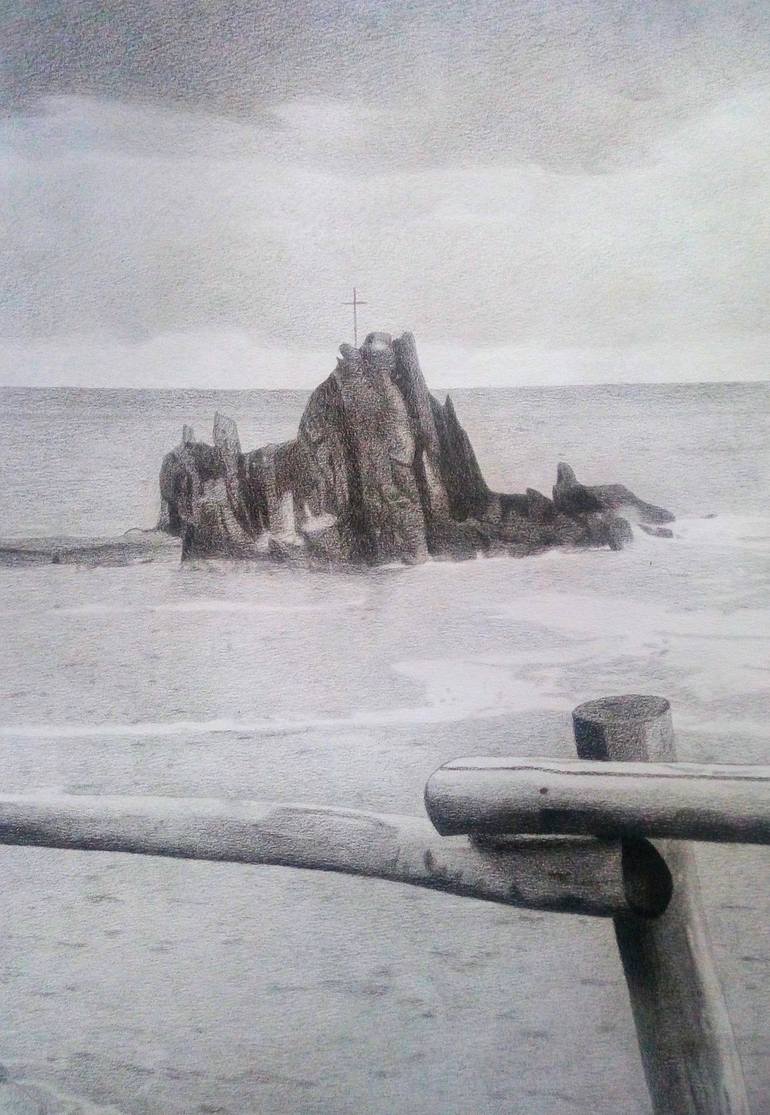 Lanscape on the seaside, sanctuary on a cliff in the middle of the sea.