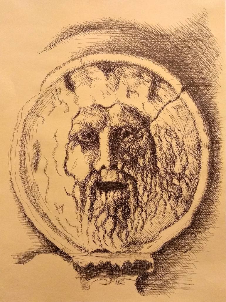 Rome cityscape: Mouth of Truth (Bocca della Verità) # 015 (Series Italian Landscape Ink, Graphite, Pencil, Charcoal Drawing) Mouth of Truth (Bocca della Verità) The Mouth of Truth (Italian: Bocca della Verità [ˈbokka della veriˈta]) is a marble mask in Rome, Italy, which stands against the left wal...