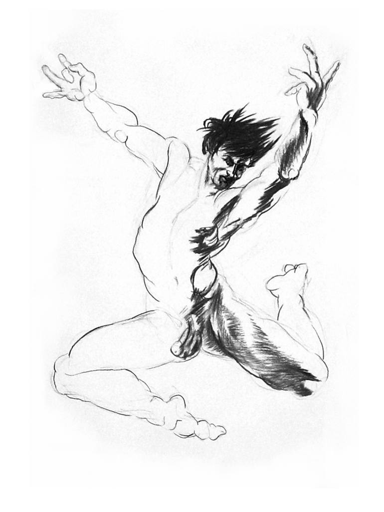 Similar to the way a Jazz performer uses a familiar song as a starting point for improvisation, artist Richard Claraval uses the human figure as inspiration for creating Abstract Expressionist gesture in his charcoal drawings and adding abstract forms to his polystyrene sculptures. These extend the figure physically, emotionally and philosophically. Sometimes these gestures and shapes eurhythmically echo the figure, a la the draperies and landscapes of Renaissance and Romantic art, and sometimes they make visible the beautiful lines inscribed in space by dancers and athletes. Being enamored of both the Renaissance human figure and Abstract Expressionism, Claraval seeks a fusion of the two. Both are deeply involved with the kinesthetic sense. Just as one “feels into” the of a figure moving through space, the sense that one is moving with the arcs and slashes of Abstract Expressionism is clear. Having a strongly romantic bent, Claraval’s work is often passionate and intense, and Classical music is a main reason for this and one of his biggest inspirations. https://. ----------------- Claraval's honors include a juror’s award at the Associated Artists of Pittsburgh’s Annual Exhibition at the Carnegie Museum of Art and a juror’s award at a group exhibition at Panza Gallery. His drawings and sculptures have been in solo and group exhibitions in galleries and museums throughout the Eastern U.S., including The Bascom Center for the Visual Arts, in North Carolina, the Carnegie Museum of Art, the Pittsburgh Center for the Arts, Westmoreland Museum of Art and Gallery NK in Washington, D.C. His male nudes have been featured in The Art of Man Magazine. Mr. Claraval’s work is in collections throughout the east, including Westinghouse Corporation, collection of Dr. Ted Steliotes and the Friends of Art Pittsburgh. Born in 1952, Claraval grew up in a small western Pennsylvanian town, and now resides in Pittsburgh. He received a B.A. in art from Indiana University of Pennsylvania in 1977. ---------------- Some notes on my process: Drawings: I sometimes start with a general, cloud-like image of the entire piece in my mind – and then gradually bring it into focus, adding in the figure and other elements at the same time. In this case I create a pose for the figure that fits my overall vision.