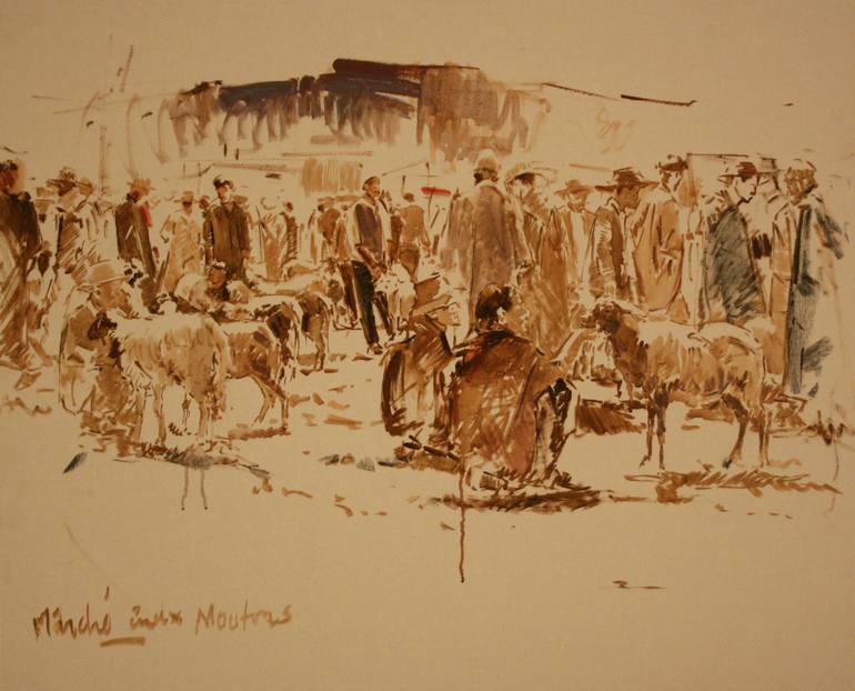 SKETCH OF TYPICAL MOROCCAN WEEKLY MARKET SCENE