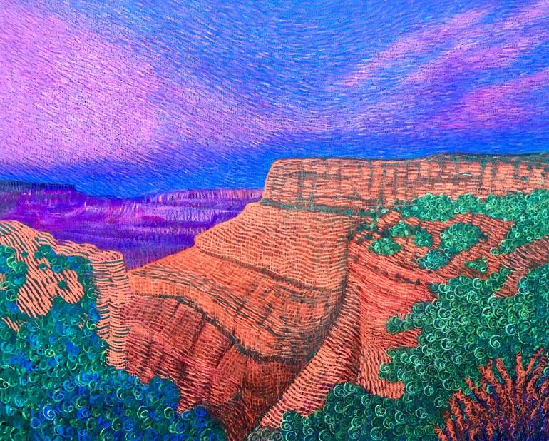 Moran Point is one of the most popular places at the South Rim, Grand Canyon to see lovely majestic views. My rendering of it is done in impressionistic style to capture the beautiful sunset of this landscape.
