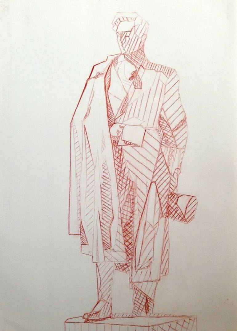 A geometric study of the statue at the entrance of the Museum of Fine Arts in Valencia, done in sanguine on paper, on site.