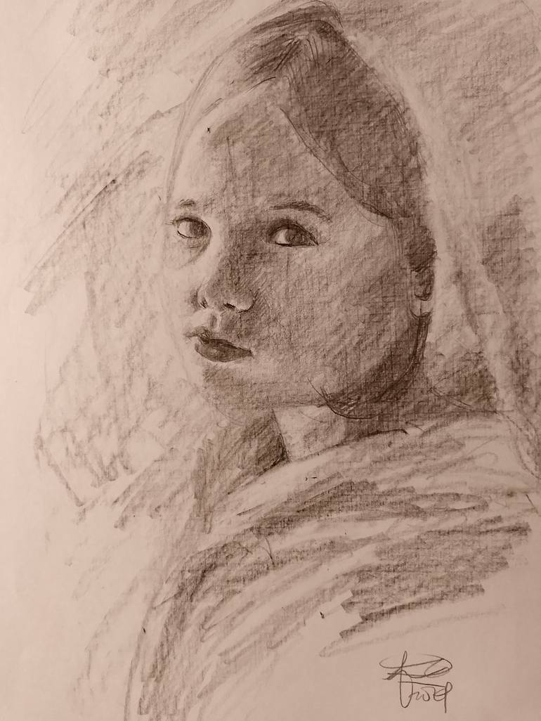 Inspired by the picture of the daughter, the classic song, and the little happiness. Made originally by the artist in 2024, using pencil drawing for the medium.